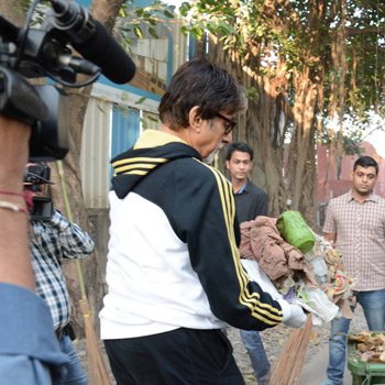 Big B took broom in his hands to clean the streets of Mumbai and then posted his picture on his social networking page, along with the caption “And before the finale .. it was ‘Swach Bharat Abhiyaan’ .. went on the streets and broomed and collected dirt to clean up the place .. The ‘Swach Bharat Abhiyaan’ .. personalised !! Let every one deserve to be involved ..”