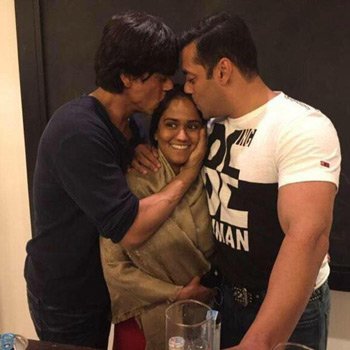 SRK spent quality time with the entire Khan family and sportingly posed for a picture kissing bride-to-be Arpita’s forehead along with Salman. After couple of hours, when he was leaving Salman played a gracious host and saw him off.